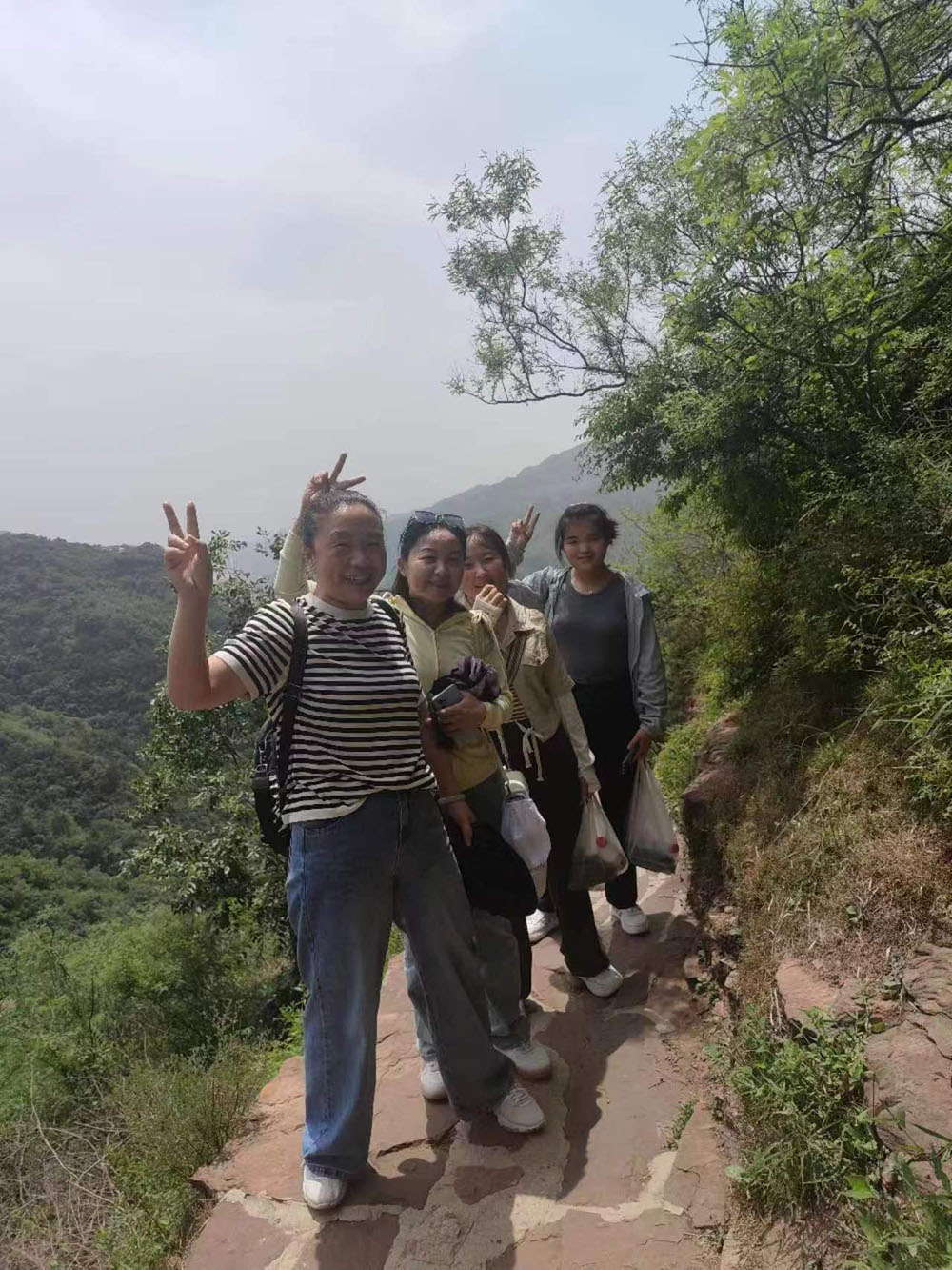 到達(dá)景區(qū)后,大家乘坐景區(qū)內(nèi)小火車(chē)來(lái)到趙匡胤千里送京娘的青銅雕像前合影留念。撫摸著青銅雕像,品味著這個(gè)凄美的愛(ài)情故事,感慨萬(wàn)千。隨后,大家乘上游船,欣賞京娘湖碧波蕩漾的旖旎風(fēng)光,感受著一線(xiàn)天峰林絕壁的壯美風(fēng)景。到達(dá)碼頭后,大家拾級(jí)而上開(kāi)始登山。隊(duì)伍分為前鋒、后營(yíng)、中軍,團(tuán)隊(duì)前后呼應(yīng),協(xié)調(diào)行動(dòng)。上山的路雖然很陡峭曲折,有的路段甚至沒(méi)有臺(tái)階,但大家相互鼓勵(lì),相互加油,堅(jiān)持著向上攀登,向上攀登。中午,在山里人家簡(jiǎn)單用餐后小憩一會(huì)兒,午后繼續(xù)向山頂發(fā)起沖鋒。每當(dāng)大家疲憊至極時(shí),就停下來(lái)休息一下,吹著清爽怡人的山風(fēng),回眸走過(guò)的山路,又是一番別樣的風(fēng)景,一身的疲憊和勞累一掃而光。短暫休息后,大家繼續(xù)向上攀登,有的員工走不動(dòng)了,落在了后面,大家就扶一把,拉一把,幫助他們跟上隊(duì)伍。在大家的共同努力下,終于成功登上了宋祖峰的頂峰,整個(gè)團(tuán)隊(duì)沒(méi)有一個(gè)人掉隊(duì)。特別是車(chē)間女工表現(xiàn)的非常頑強(qiáng),體現(xiàn)了不怕苦不怕累、積極向上的精神風(fēng)貌。團(tuán)隊(duì)的一些老員工,還有員工家屬,不管是老人還是孩子,都表現(xiàn)的很好,堅(jiān)持到了最后,站上了峰頂。